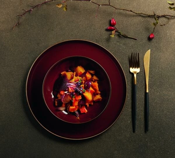 Der ASA Coupe Teller der Serie Kolibri ist aus einem dunklen, herbstlichen Rot, genannt rusty red. Der Porzellan-Gourmetteller besticht durch ein zeitloses Design. Er eignet sich ideal für das Servieren von Hauptspeisen und Suppen. Der Essteller wird selbst zum dekorativen Element und vollendet somit jede gedeckte Tafel.