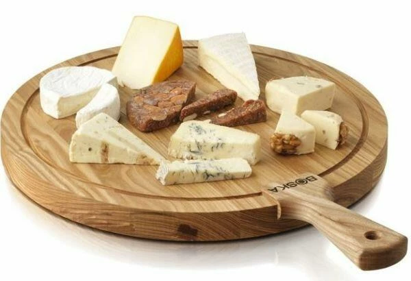 Boska Käsebrett Friends L guten Freunden und Bekannten schmackhafte Käsesorten zu servieren? Auf dem großen Käsebrett mit 40 cm Durchmesser findet sich genügend Platz, um vorzugsweise 5 Sorten Käse anzurichten. Auf diesem Käsebrett kommt jeder Käse zur Geltung! Das handliche Brett aus weißem Eichenholz wird durch einem stabilen Griff komplettiert.