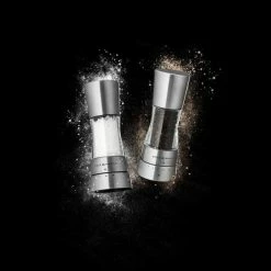 Die Derwent Mini Mühlen sind die perfekte Balance zwischen stilvoll, zeitgenössisch und klassisch-elegant. Hergestellt aus kristallklarem Acryl und Edelstahl in trendigem Gun-Metal-Finish sind sie eine schöne Ergänzung für jedes Zuhause. Als Teil der Cole & Mason Gourmet Precision-Reihe geben sie Ihnen die Gewissheit, den Geschmack jeder Mahlzeit durch Würzen wie ein Profi zu verbessern. Die Grind Select-Funktion verfügt über vorgewählte Einstellungen, die sich bewährt haben, immer das Beste aus Ihren Mühlen und Mahlzeiten herauszuholen. Die Pfeffermühle verfügt über sechs Einstellungen, die Salzmühle über drei, von fein bis grob. Beide Mühlen sind mit hochwertigen schwarzen Pfefferkörnern aus Vietnam und grobem Meersalz aus Belgien gefüllt, sodass Sie sie sofort verwenden können. Der Gourmet Precision Pfeffermechanismus besteht aus gehärtetem Karbonstahl, der Pfefferkörner abstreift, anstatt sie zu zerkleinern, damit sie ihre natürlichen Öle freisetzen können, die Ihnen mit jeder Umdrehung mehr Geschmack verleihen, während der Salzmechanismus aus diamantscharfer Keramik besteht. Wunderschön präsentiert in einer handgefertigten Geschenkbox, die sie zu einem perfekten Geschenk macht.