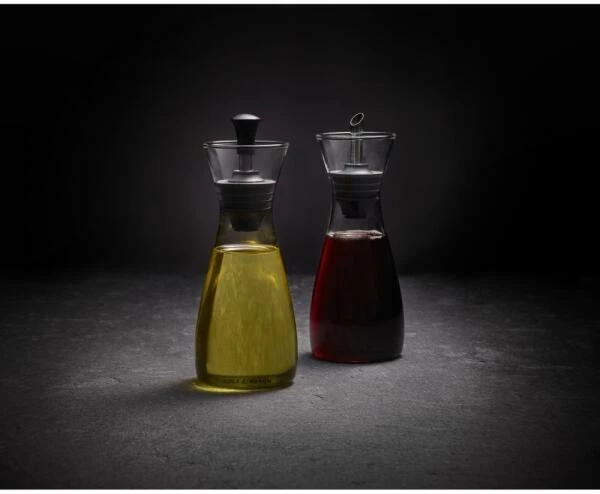 Besonders praktische und elegante Lösung für die Lagerung und Dosierung von Öl, Essig und anderen gießfähigen Produkten. Das Flüssigkeitsrückführungssystem sorgt dafür dass kein Öl oder Essig an der Seite der Flasche ausläuft. Die Ausgießer sind so konzipiert, dass sie einfach zu befüllen sind. Das klassische Design sieht in Küche und auf dem Tisch besonders gut aus.