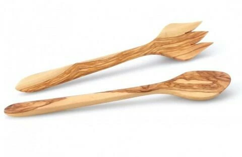 Salatbesteck N° 2 aus Olivenholz. Extrem hartes Holz mit hoher Materialstärke.