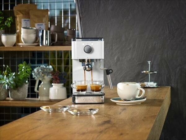 GRAEF Siebträger-Espressomaschine salita, weiß. Mit Einkreis-Thermoblock – heizt extraschnell auf. Durch das Vorbrühsystem wird das Kaffeemehl vor dem Bezug befeuchtet und wird noch aromatischer. Der Pannarello Aufsatz verhilft Einsteigern zu cremigem Milchschaum.