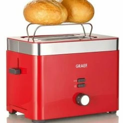 Graef Toaster TO 63 in rot. Mit diesem kompakten 2-Scheiben-Toaster von Graef toasten Sie Ihr Brot im Handumdrehen.