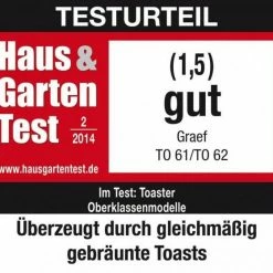 Der Toaster TO 63 von Graef verfügt über ein wärmeisoliertes Kunststoffgehäuse und ist für zwei Toastscheiben geeignet. Der Toaster ist mit einer Sicherheitsabschaltung ausgestattet, sollte sich das Röstgut einmal verklemmen. Die integrierte Brotscheibenzentrierung sorgt für eine gleichmäßige Bräunung der Toastscheiben von beiden Seiten. Zusätzlich können auf dem Brötchenaufsatz Brötchen oder Toastscheiben aufgewärmt und angebräunt werden. Die Nachhebevorrichtung erleichtert die bessere Entnahme des Toasts. Über den Bräunungsgradregler mit Clic-Clic Funktion kann der gewünschte Bräunungsgrad in 6 Stufen eingestellt werden. Durch die Stopp-Taste kann der Röstvorgang unterbrochen werden, die Auftau-Taste ermöglicht hingegen ein schonendes Auftauen des tiefgefrorenen Röstgutes. Die rutschfesten Gummifüße und die Automatikabschaltung bei Verklemmen des Röstgutes machen den Toaster TO 63 von Graef zu einem Produkt für Sicherheit in Ihrem Alltag. Der Toaster ist sowohl für normales Toastbrot, als auch für großes American Sandwich Toastbrot geeignet.