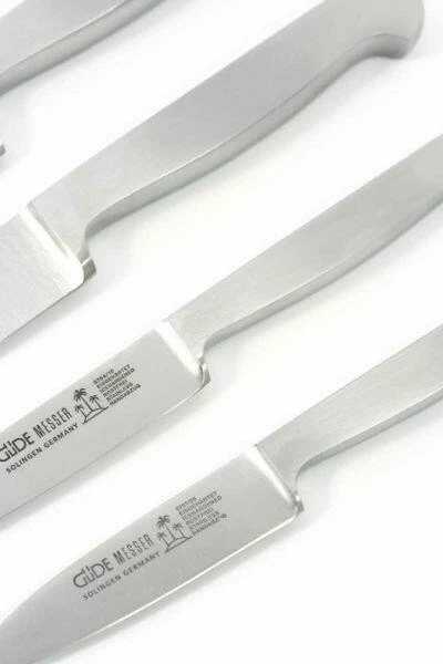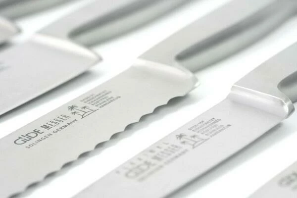- Güde Messer niemals ungereinigt liegen lassen – besonders nach dem Umgang mit säurehaltigen Nahrungsmitteln.