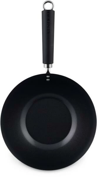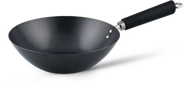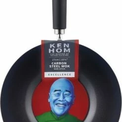 Ken Hom Wok aus Antihaft Karbonstahl mit Phenolharz-Griff, 27 cm. Dieser Wok macht das Braten schnell und einfach. Mit einem flachen Boden ausgestattet, ist er einfach zu bedienen und passt perfekt auf alle Herdarten, einschließlich Induktion.