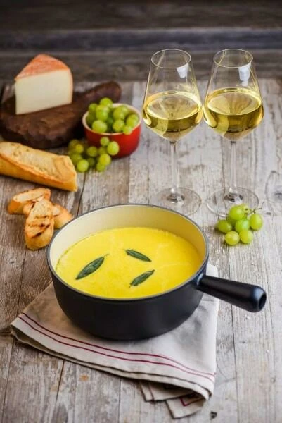 Le Creuset Caquelon aus Gusseisen in schwarz. Passender Caquelon mit 22 cm Durchmesser für schmackhaftes Fondue.
