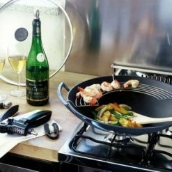 - Ausstattung: Wok mit Glasdeckel aus Gusseisen