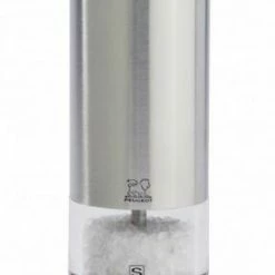 Salzmühle Elis sense elektrisch aus Edelstahl matt und mit einer stufenlosen Mahlwerkeinstellung über den unteren Ring. Taktile Bedienung mit nur einer Hand ermöglicht ein Mahlen mit hohem Komfort und der gewohnten Schärfe eines Peugeot Mahlwerks. Mit den elektrischen Mühlen von Peugeot läßt sich das Mahlgut optimal dosieren.