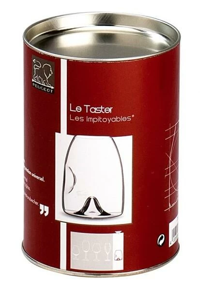 Die Form des TASTER® wurde so konzipiert, dass binnen kürzester Zeit ein Höchstmaß der im Wein enthaltenen Aromastoffe wahrgenommen werden kann. Der Peugeot Taster ist ein Glas mit sehr klaren Konturen, klein, leicht zu transportieren und zu lagern und bringt sämtliche Eigenschaften eines Weines (Farbe, Aromen, Ausgeglichenheit im Mund etc.) voll zur Geltung. Der handgefertigte, mundgeblasene TASTER® hat zwei Einbuchtungen, eine am Boden und eine in der Wandung, die zwei Funktionen erfüllen: Zum einen kann das Glas an dieser Stelle mit zwei Fingern gehalten und so eine Erwärmung des Inhalts vermieden werden. Zum anderen wird der Wein dadurch belüftet, da sich die Moleküle an den Einbuchtungen brechen.
