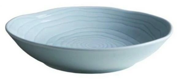 Pillivuyt Teller tief Teck in hellblau. Elegant geschwungener Teller in hellem Blau.