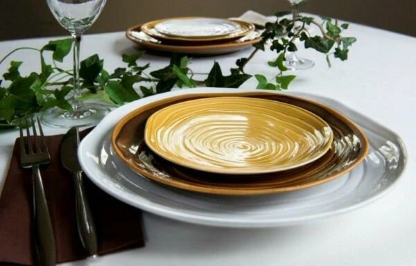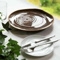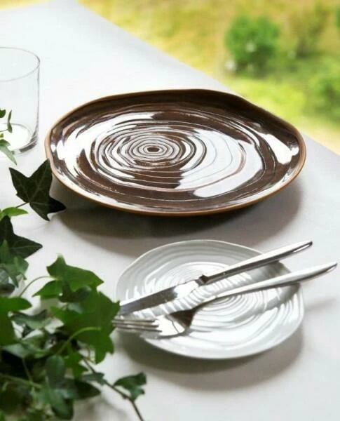 Die Serie Teck von Pillivuyt wurde von der Natur und deren Holzmaserungen inspiriert und umfasst Teller, Tassen und Salatschüsseln mit geschwungenem Dekor.