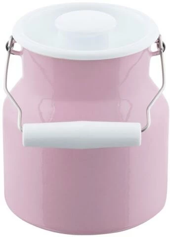 Riess Milchkanne mit Deckel aus Emaille in rosa. Die Kanne im nostalgischen Design ist ideal für Milch, Saft und Wasser, eignet sich aber auch als Aufbewahrung von Küchenhelfern oder sogar als Blumenvase.