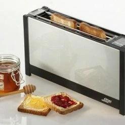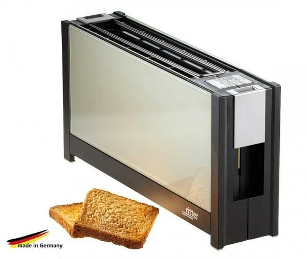 Mit nur knappen 9 cm Breite ist der elegante Toaster volcano5 von ritter unvergleichbar schmal und natürlich „made in Germany“. Er ist mit edlen Glasfronten in schwarz, weiß und rot erhältlich. Der Langschlitztoaster volcano5 röstet zwei Scheiben gleichzeitig und verfügt über eine automatische Röstgutzentrierung, eine Auftau- und Aufwärmfunktion sowie eine integrierte Brötchenauflage und ein Krümelfach. Der Röstgrad wird digital über LED’s angezeigt. Das wärmeisolierte Gehäuse, die automatische Abschaltung bei Klemmen des Toastes, eine separate Stopptaste zum Unterbrechen des Toastvorgangs und die manuelle Nachhebefunktion gewährleisten absolut sicheres Toasten.