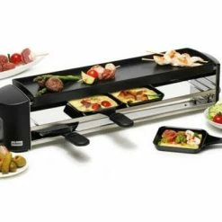 Stöckli Cheeseboard GRILL für 4 Personen, schwarz. Das antihaftbeschichtete Raclette- und Grillgerät mit 4 Pfännchen, 4 Spachteln und Parkdeck.