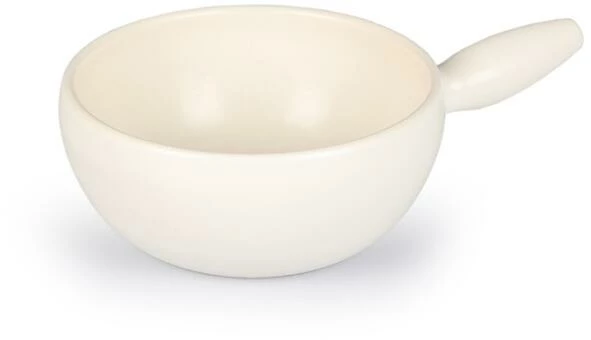 Caquelon Tradition in weiß. Das schlichte Design passt in jedes Interieur und sorgt für eine angenehm zeitlose Atmosphäre beim Fonduabend für 3-4 Personen. Inklusive Wärmeverteilplatte.