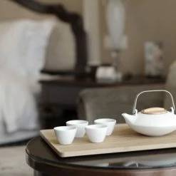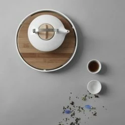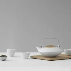 Viva Scandinavia Tee-Set beinhaltet die Pure Porzellan-Teekanne mit 350 ml Füllmenge, einem Deckel aus Eichenholz sowie einem Edelstahl-Teefilter. Mit den vier kleinen Teebechern mit 40 ml Füllmenge treffen Sie Freunde in kleiner Teerunde.