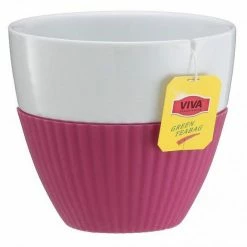 Viva Scandinavia Teebecher Anytime in pink, 2er Set. Porzellan-Teebecher mit Silikonmanschette und Einkerbung am Rand. Speziell zum Aufgießen von Teebeuteln.